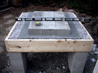 Real visible progress today. The box has been filled with cellulose insulation, cement board on top of that and then a layer of solid block. The next stage will be to lay the brick hearth/floor.