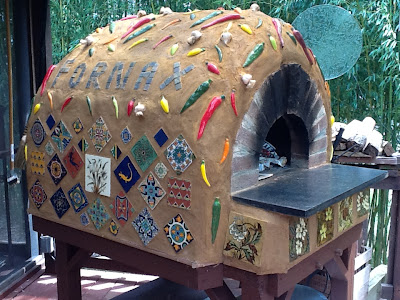 Photo of Hall's recently completed oven. In terms of style, I would say that this is the first oven I've seen that would fall into the genre of "outsider art." I love it.