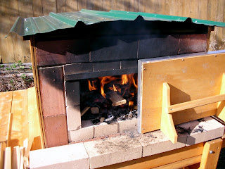 Here are a few photos of Chuck's oven door. He had the sheet metal bent by a friend who has a metal brake. Chuck screwed through a thin piece of plywood into the metal and then filled the shallow cavity with fiberglass. He says he has a much easier way of doing it next time.