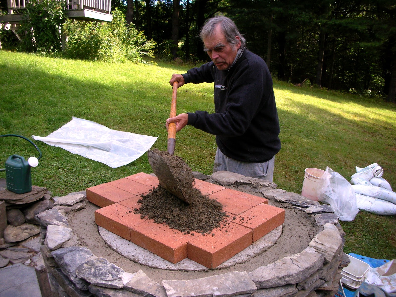 Most people think that building an earth (mud) oven is easier to accomplish than constructing a brick oven. This is generally not true. The brick oven shown can easily be made by a non-mason. There are no bricks to cut, and after all, a brick is generally a brick, whether it's a red clay brick or a fire brick.