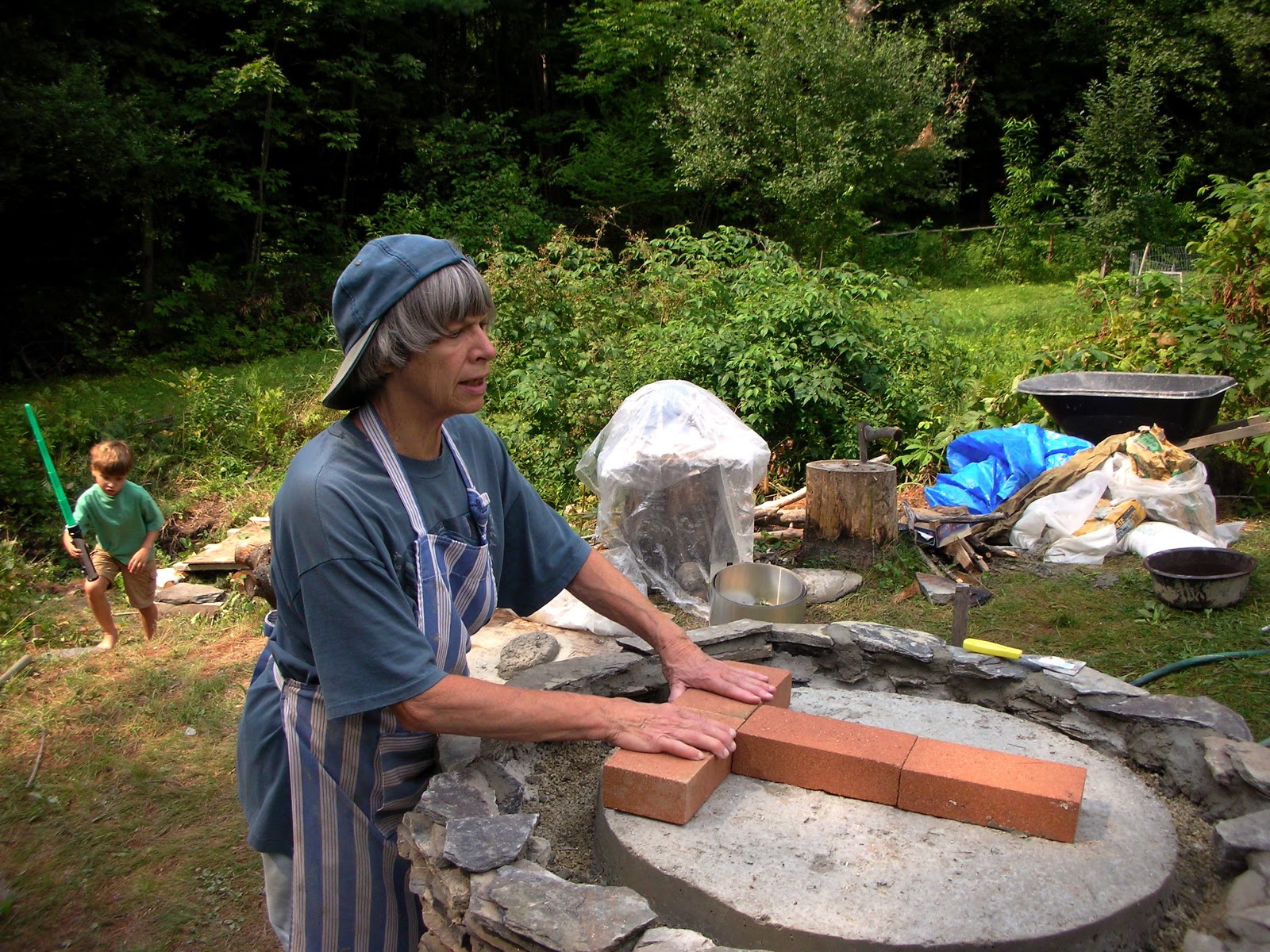 Same oven as above, but under construction and a view from the back. Four simple brick arches form the core of this oven.