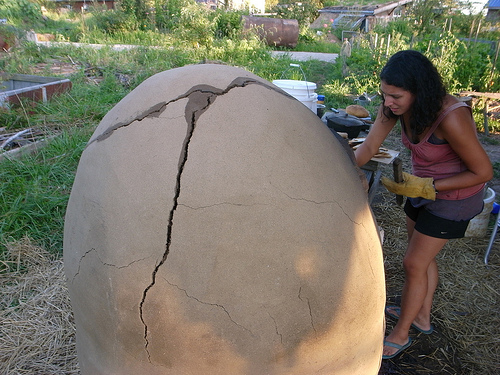 I don't think anyone actually enjoys seeing cracks in an earth oven that's just been created, but I have never seen an earth oven that did not have cracks.